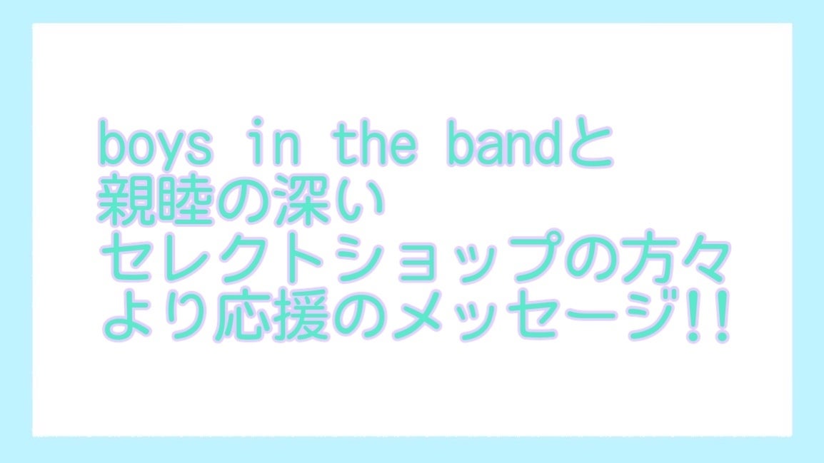 皆さん、初めまして名古屋の矢場町にお店を構えております boys in the band と申します。