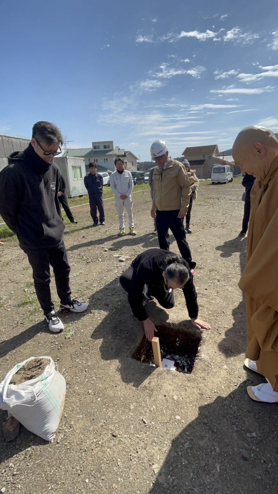 さて、地鎮祭というのはあつろー自身初めての経験で、作法というものが全く分かっておりませんでしたが、結構カタカナを使う坊さんのおかげで何とか形にはなったと思います。