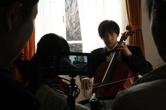 W主演の長谷川大さんは、子供の頃からベースを弾いていたそうで 音楽の素養はありましたが、チェロは手こずったようです 撮影3か月前から、チェロの練習をしてもらっていました。 レッスンも東京で受けて貰いましたよ 12月頃は別の撮影などがあり、大変そうでしたが、 なんとか撮影をすることができました。 衣装は、チェリストの藤原さんにお借りしました。 たった数秒の映像でも沢山の方のご協力、労力等がぎゅっと詰まっています☆