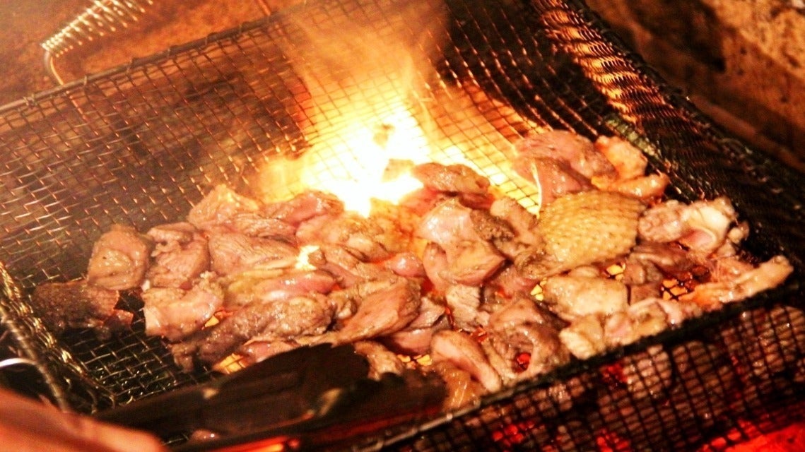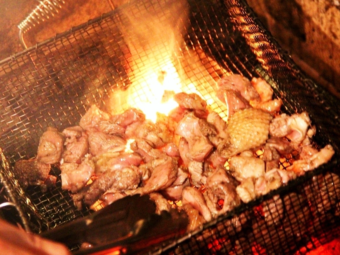 旨味と歯ごたえが特徴の地鶏を名前の如く炭火の中で高火力で焼き上げます♪