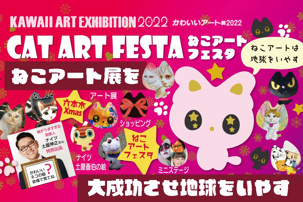 こんにちは!私たちは「ねこアートフェスタ ~かわいいアート展2022~」(12/20~26・六本木)の運営チームです。