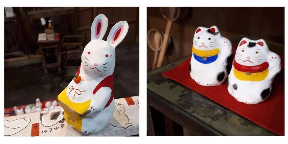 アート展出品の千葉県の一宮町の玉崎神社前の一の宮張り子のかわいい張り子です。干支のウサギか招き猫(赤系か青系)1個を選べます。干支のウサギは12月中にお正月に間に合うように送ります。招き猫は1月中に送ります。