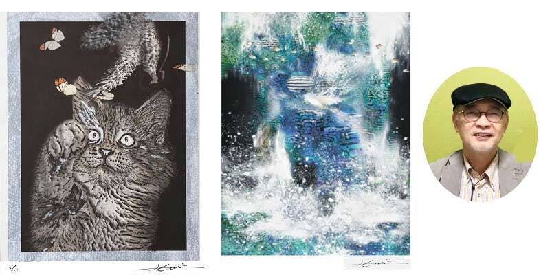 本展の監督であり、デジタルアート作家として国内外でご活躍の、國井一色先生のデジタル版画作品(サイン入り・額装)(額サイズ横幅45cmほど)1点を、配送でお届けします。猫か波しぶきの絵を選ぶことができます。どちらも会社オフィスの開店祝いなどで人気です。(波の絵は同じイメージですが波しぶきが少し変わる場合があります)国画会版画部会員・日本デジタルアート協会代表・國井一色塾 主宰。本展のための特別企画です。