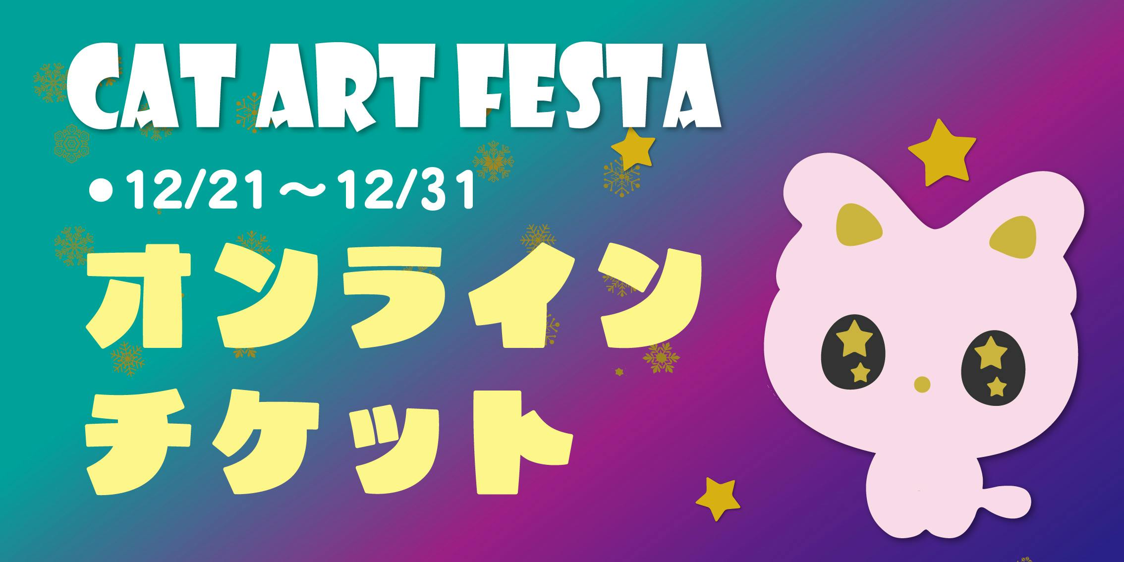 「ねこアートフェスタ」の、会場かオンラインのチケット1枚+お礼の画像+お礼のメール。