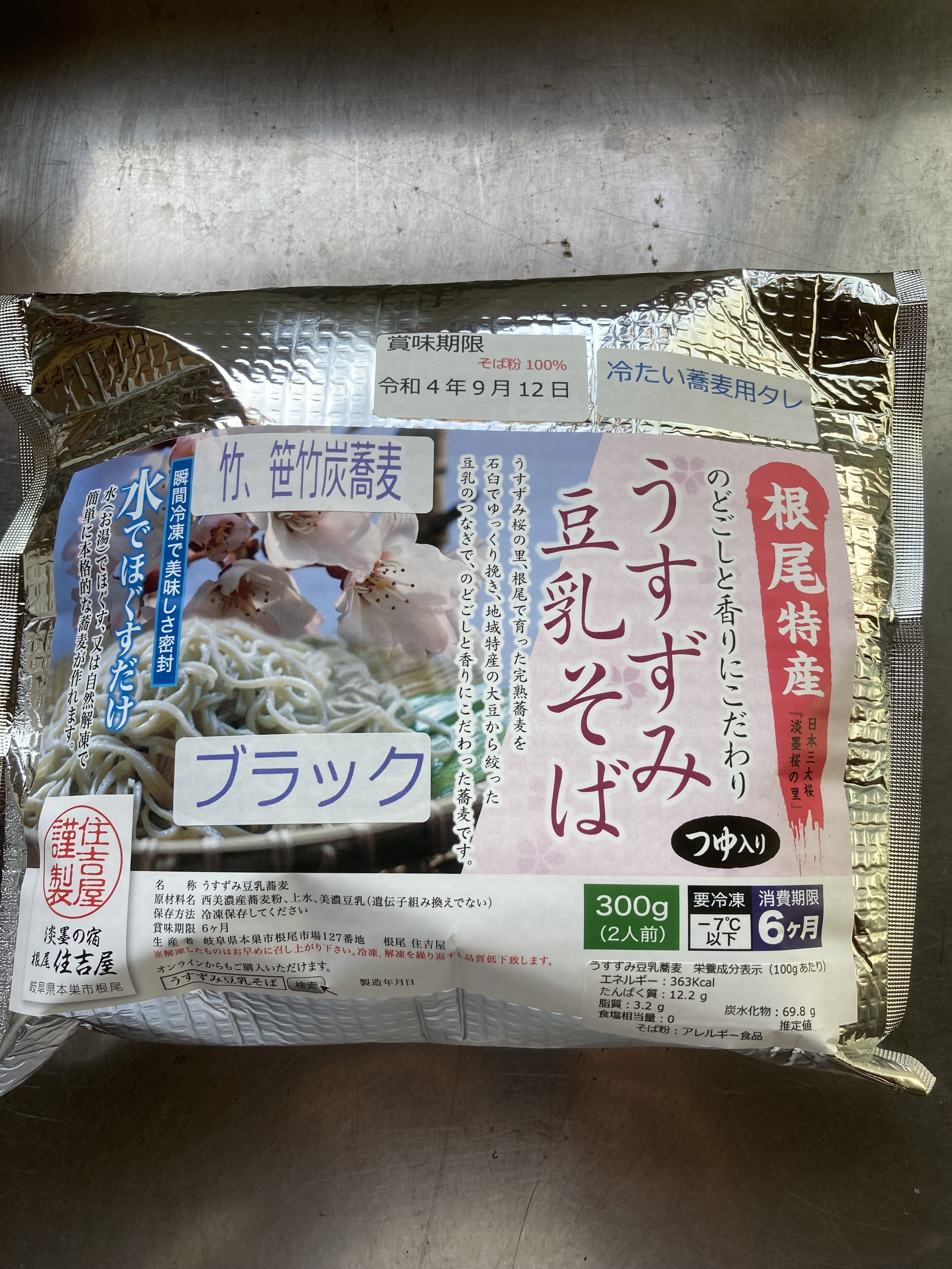 この地域の人口は台風被害や主な森林事業の衰退により激減し、耕作放棄地が増大。更に人口の減少により サルや鹿、イノシシなどの獣害が拍車をかけています。そこで救荒植物の蕎麦で地域活性を企画。自家栽培の蕎麦、岐阜産の大豆使用の豆乳。地産地消をモットーに石うす挽きの蕎麦と豆乳を練りこんだ十割豆乳蕎麦を製作しています。十割蕎麦は繋ぎがない分、賞味期間が3日以内と短いため、 水で解凍するだけで食べられる流水麵を製作。冷凍保存で6か月は大丈夫です。 加熱処理無しで食べられるので、深夜でも、屋外でも、高齢者や小学生でも 本格的な十割蕎麦を食べられます。