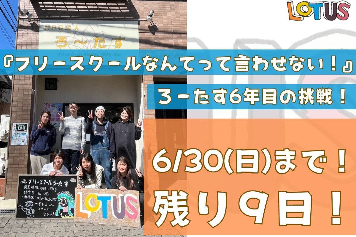 2024/06/22 22:00ろーたすが、大阪府の後押しを頂いて取り組んでいる新プロジェクト『フリースクールなんてって言わせない!ろーたす6年目の挑戦!』のプロジェクトページはこちら↓https://camp-fire.jp/projects/view/757798?utm_campaign=cp_share_c_msg_project_activities_show目標達成率92%!支援者数はなんと139人!皆さまの多大なる応援のお陰で、ここまでくることができました!本当に本当に有難う御座います。約1か月前は、ここまで沢山の方から応援してもらえるなんて、正直考えられませんでした。「頑張って!」と応援して頂く度に、僕たちのプロジェクトを拡散頂く度に。勇気を頂きました。そのおかげで何とかここまでくることができました。目標を達成したら、、、子ども達が持っている沢山の夢を叶えてあげたい、、、子ども達が「僕はろーたすで育ったんだ!」と、胸を張れるフリースクールにしたい、、、いまから、ワクワクと妄想が止まりません。(笑)最後の1秒まで頑張ります。どうか、ラスト9日間。ご支援・SNSでの拡散で、益々の応援をどうぞ宜しくお願いします!ーーー・X(Twitter)でのシェアはこちら↓https://x.com/0419matsushita/status/1798471525676499045?s=46&t=8pZsTfMXQx92KZMJoNEnYw・Instagramでのシェアはこちら↓https://www.instagram.com/p/C6kHDS_py6R/?igsh=dGJvb2VzdGFjOXY2・Facebookでのシェアはこちら↓https://www.facebook.com/share/p/P1f9htUTfmr7CR5p/?mibextid=WC7FNe もっと見る