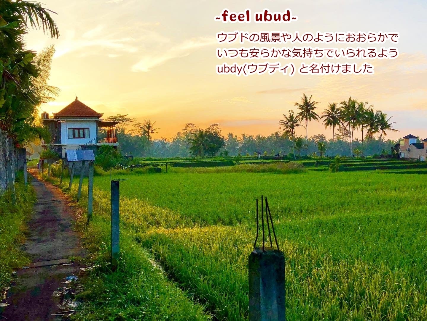 私たちはこのおだやかな風景とのんびりとしたウブドの人々が大好きです。2006年、いつもそんなウブドを感じる事ができたらと思い、ubdy(ウブディ)という「木製のハンドメイドテーブルウェア」事業をウブドの木彫り職人たちと共に立ち上げました。