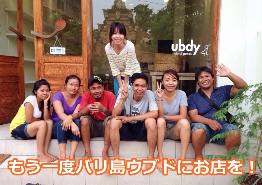 グランドオープンは秋頃を予定しており、旧ウブド店に負けないくらいいいお店にしたいと思っております。もう一度ウブドにて世界中の人に直接手に取って見てもらう場所を作り、再び現地の人々が自立した経済活動を行っていけるよう「ubud+japan」で力を合わせてがんばってまいります。