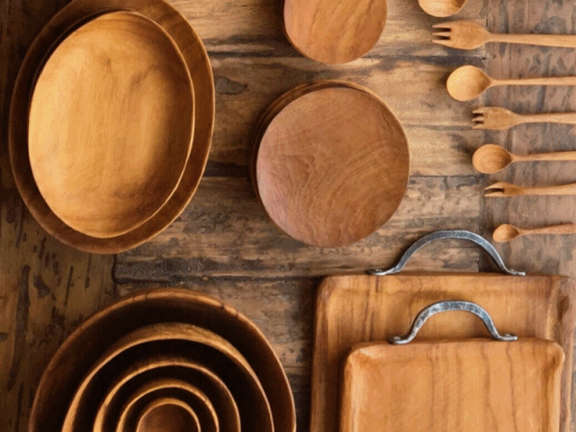 素材を存分に生かし、丁寧に手彫りされたテーブルウェア