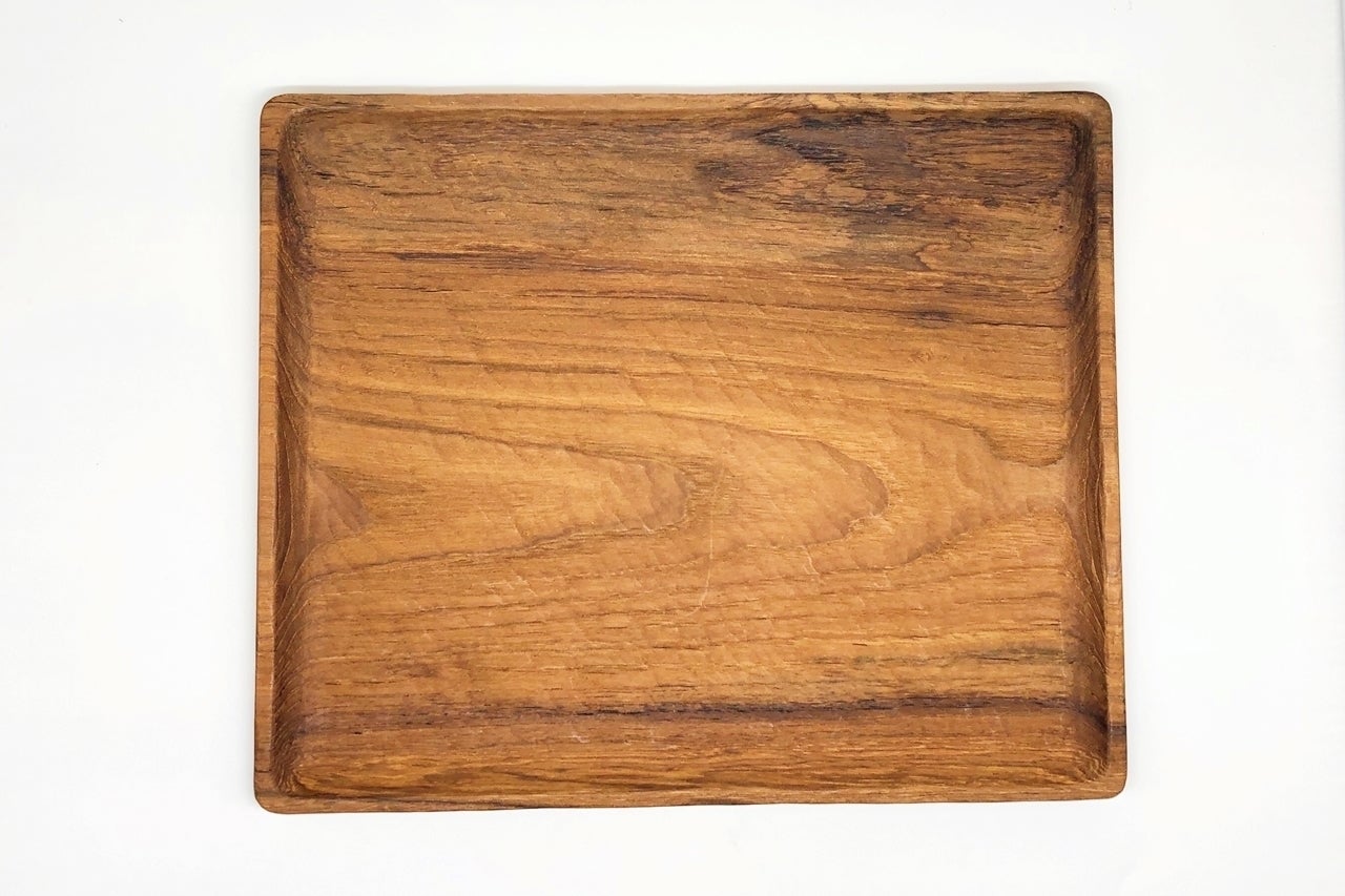 世界三大銘木チーク材を手彫りした木製テーブルウェア。油分や蝋成分を含むため、化学塗料を使わず天然のオリーブオイルだけで仕上げています。また耐久性・耐水性があるので洗剤を使ってジャブジャブ洗え、油ものもへっちゃらです。パンやスイーツはもちろんパスタや煮物などもOK!使えば使うほどチーク材ならではあじがでてくるため、経年変化が楽しめます。
