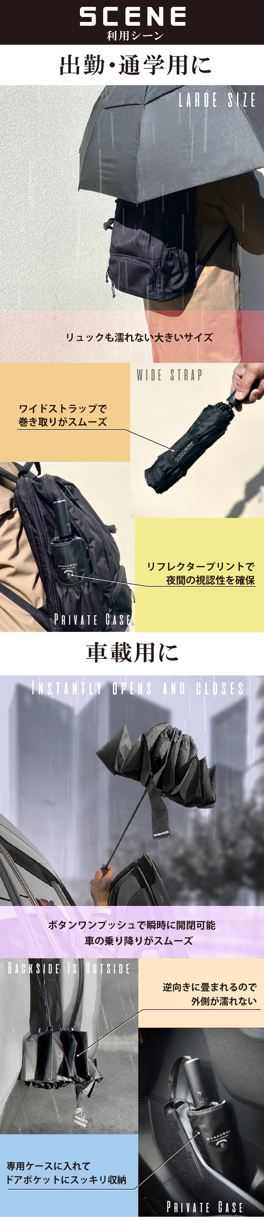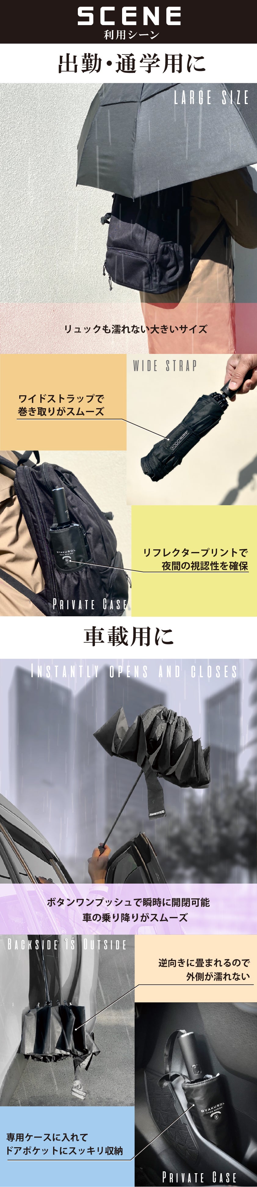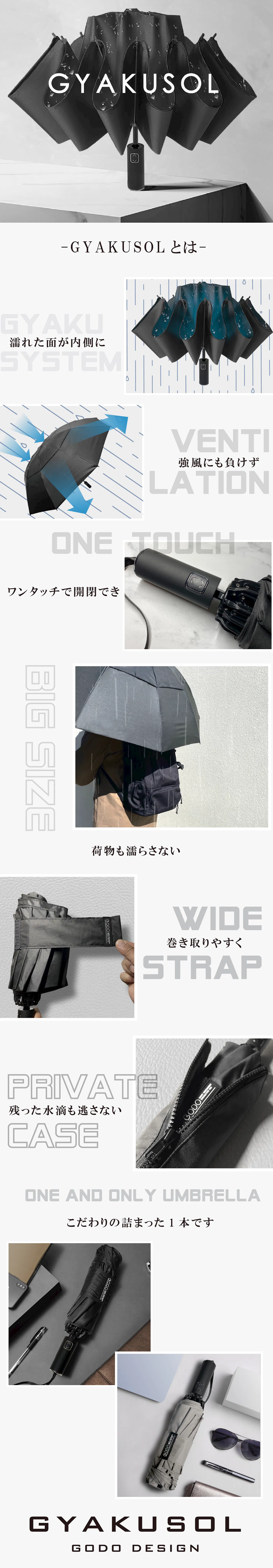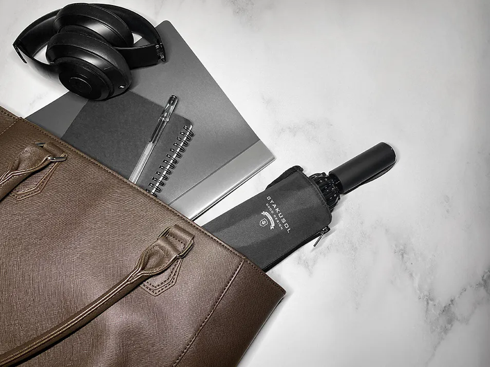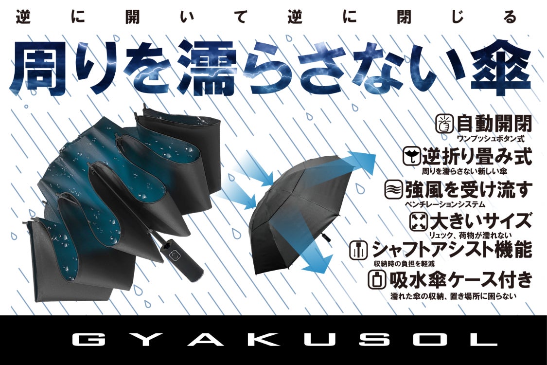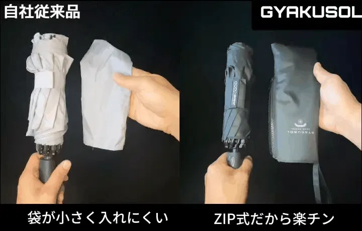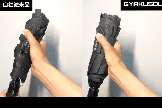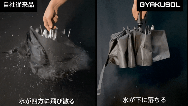 GYAKUSOLは濡れた面が内側に畳まれるので、手も濡れないので雨の日でも快適です☆