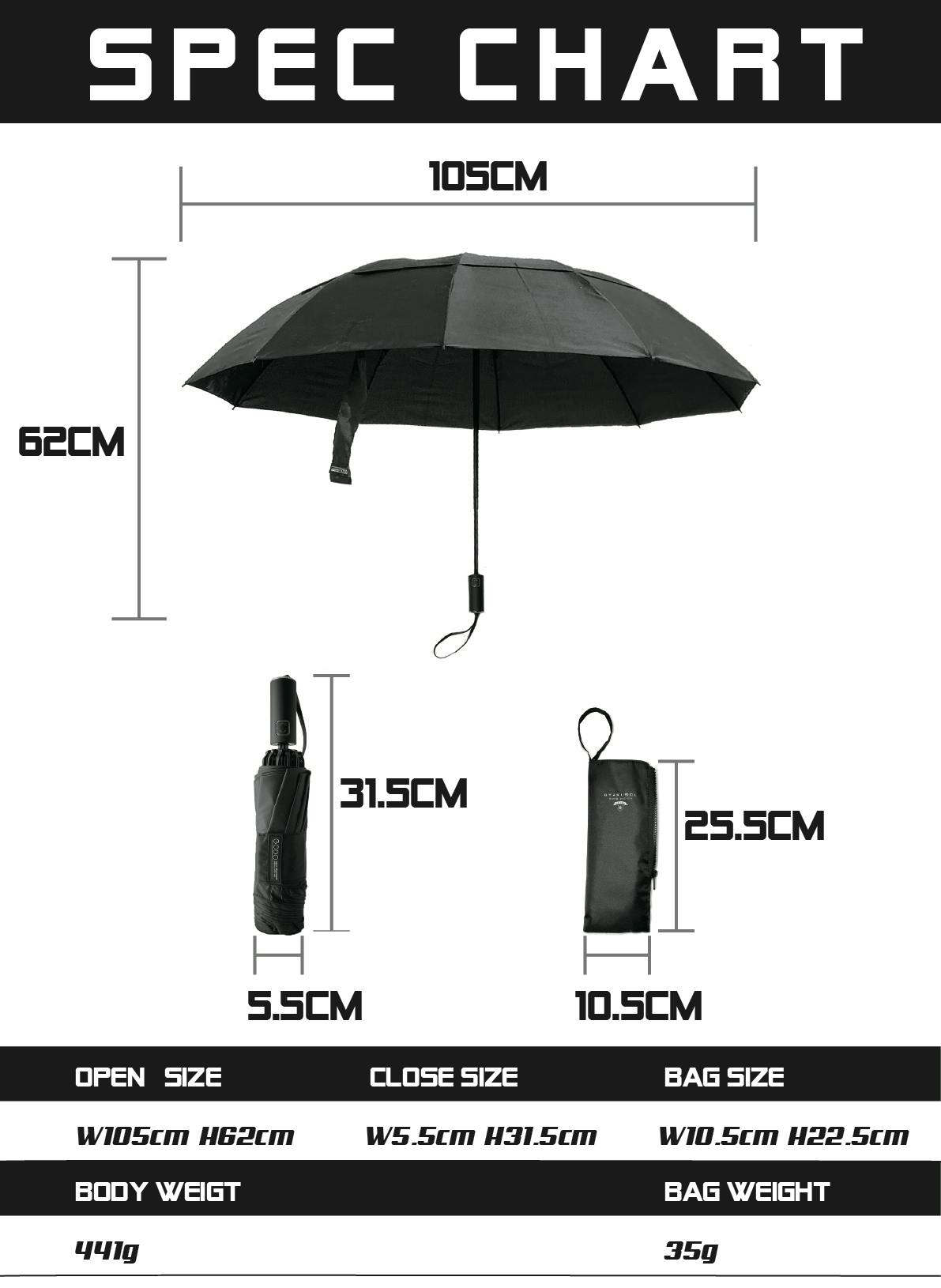 自動開閉式の傘の場合、傘のサイズが大きくなればなるほど、シャフトの内側のバネの張力が必要となります。