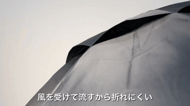 強風下においても、2層構造のベンチレーション部分から、風を逃がす構造になっており強風による傘の「ひっくり返り」が軽減され、骨が折れてしまう事故を抑止します。