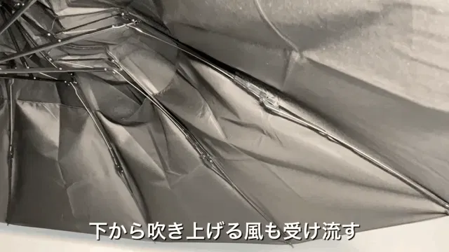 骨がひっくり返えってしまっても、折れにくい仕様です。強風にも耐えられる構造を採用しています。