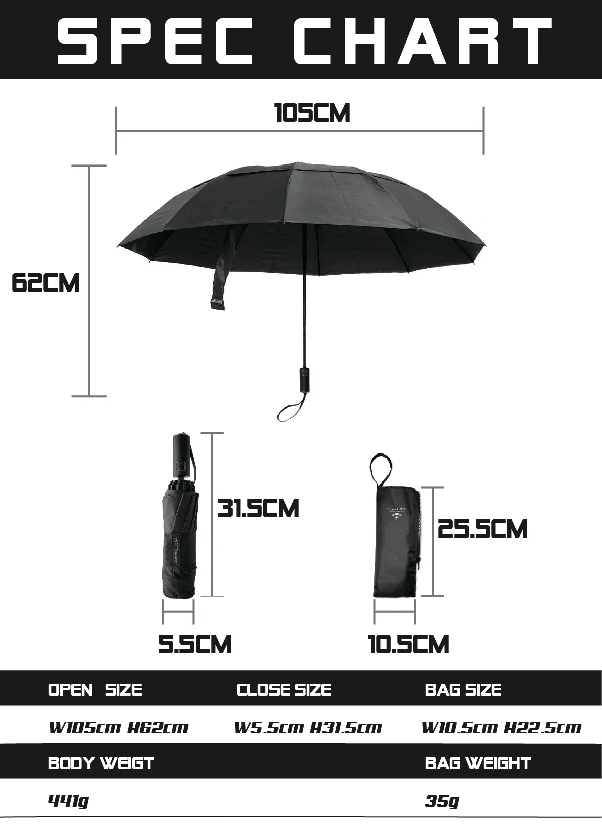 ③使用後は風通しの良い場所で収納袋から本体を取り出し、収納ベルトを外して傘布を開いた状態で自然乾燥をさせる上記3点をご留意の上ご使用ください。