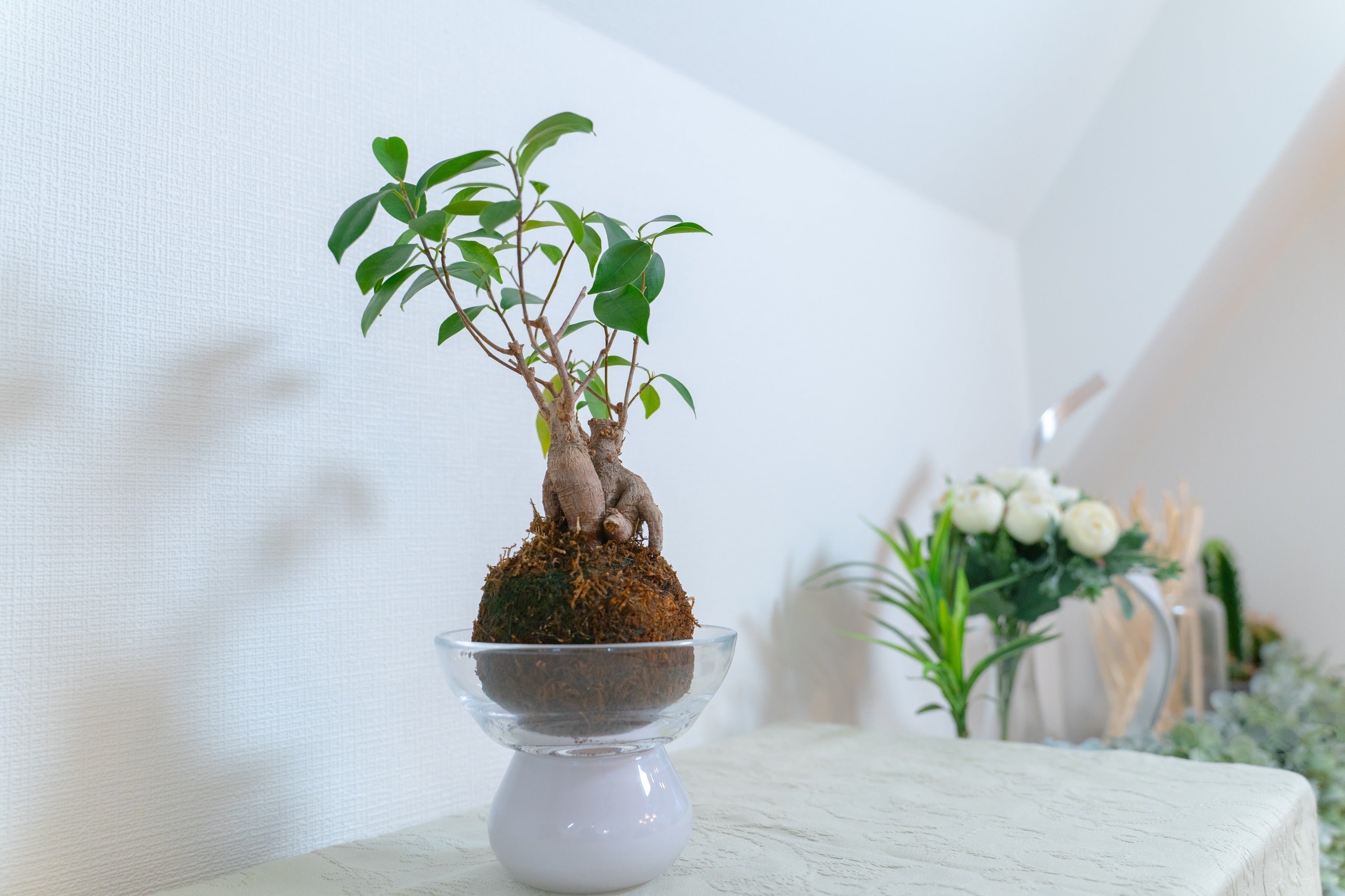 ガジュマルはとても丈夫で長寿な木です。お花だとどうしても枯れてしまったり花の開花が乏しい時、育て方が悪かったと自分を責めてしまったり大切なペットが2回亡くなってしまったと感じる方もおられると思います。そのため、枯れない・手入れの楽さを考えた時に、ガジュマルは週に1・2回程度の水やりで元気に育つため、ガジュマルの木を選びました。また、花ほど分かりやすくはないですが、木も新芽がでたり葉が色付いたりとさまざまな表情を見せてくれます。その、些細な変化に気付けるくらいガジュマルと向き合い大切にしてもらえたらとの願いをこめて選びました。