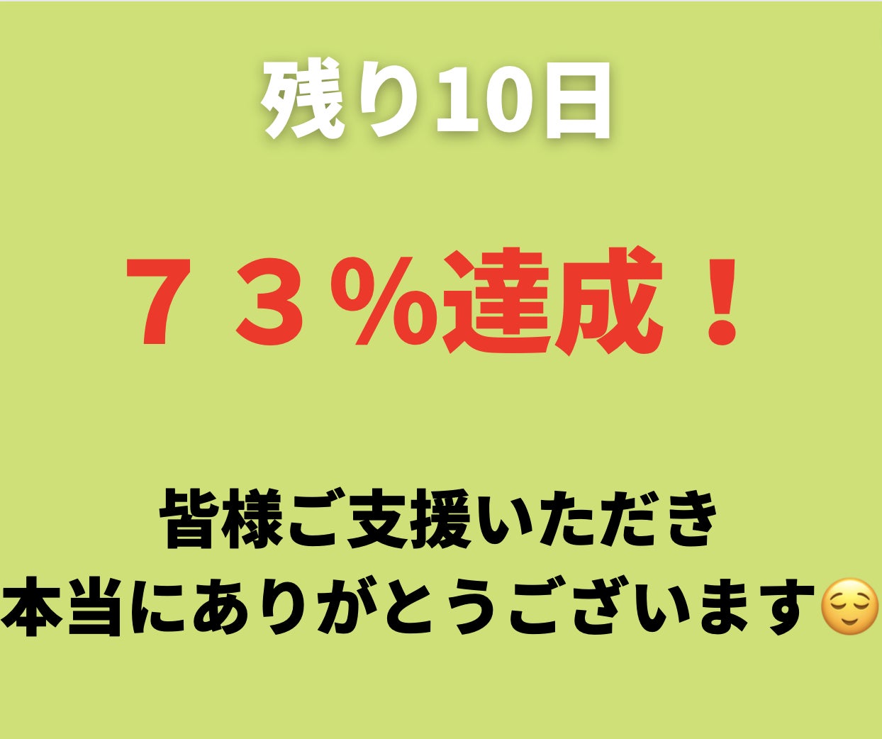 沢山の方々にご支援をいただきまして、73%達成することができました!