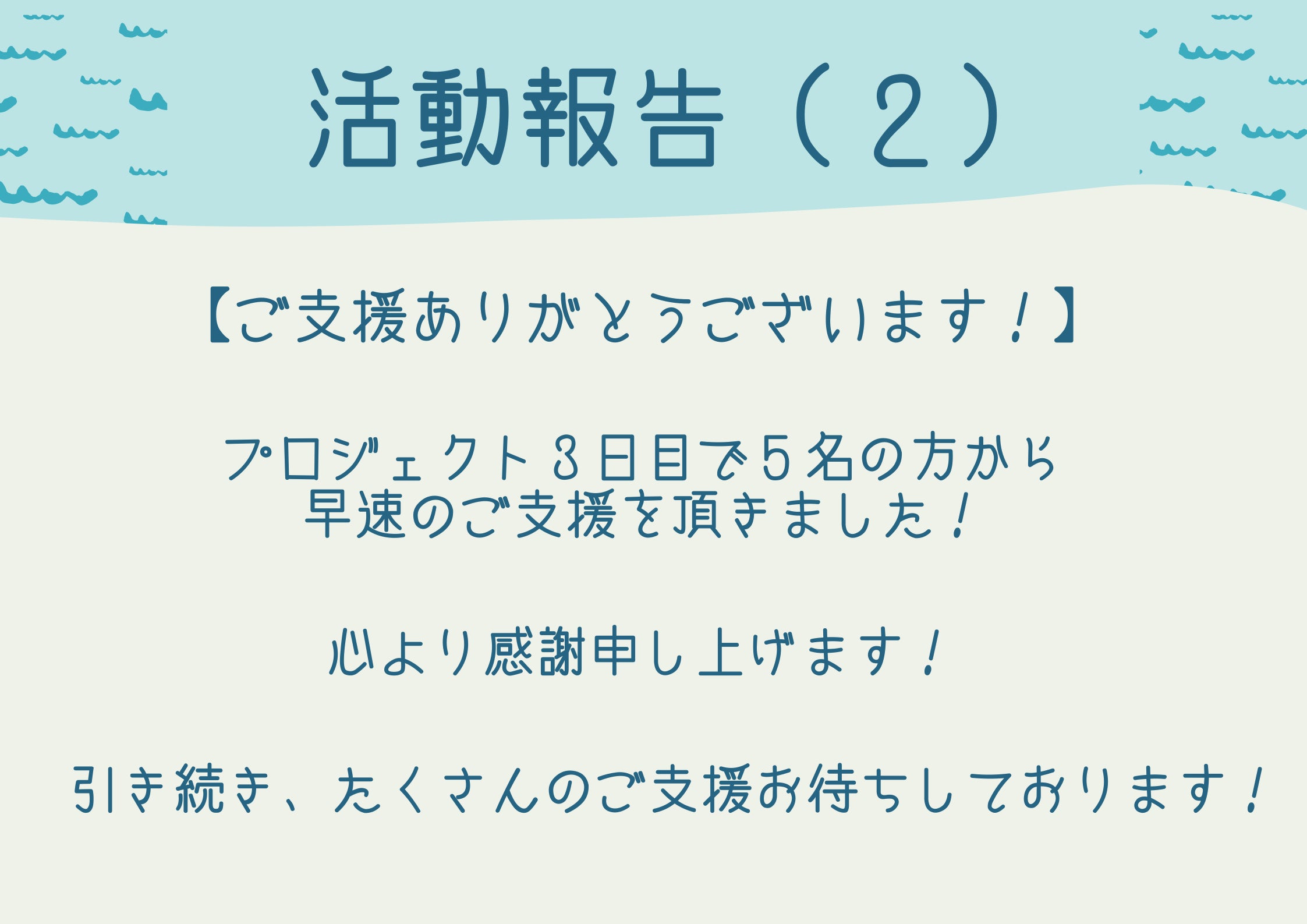 3日目で5名の方からご支援を頂きました!心より感謝申し上げます!