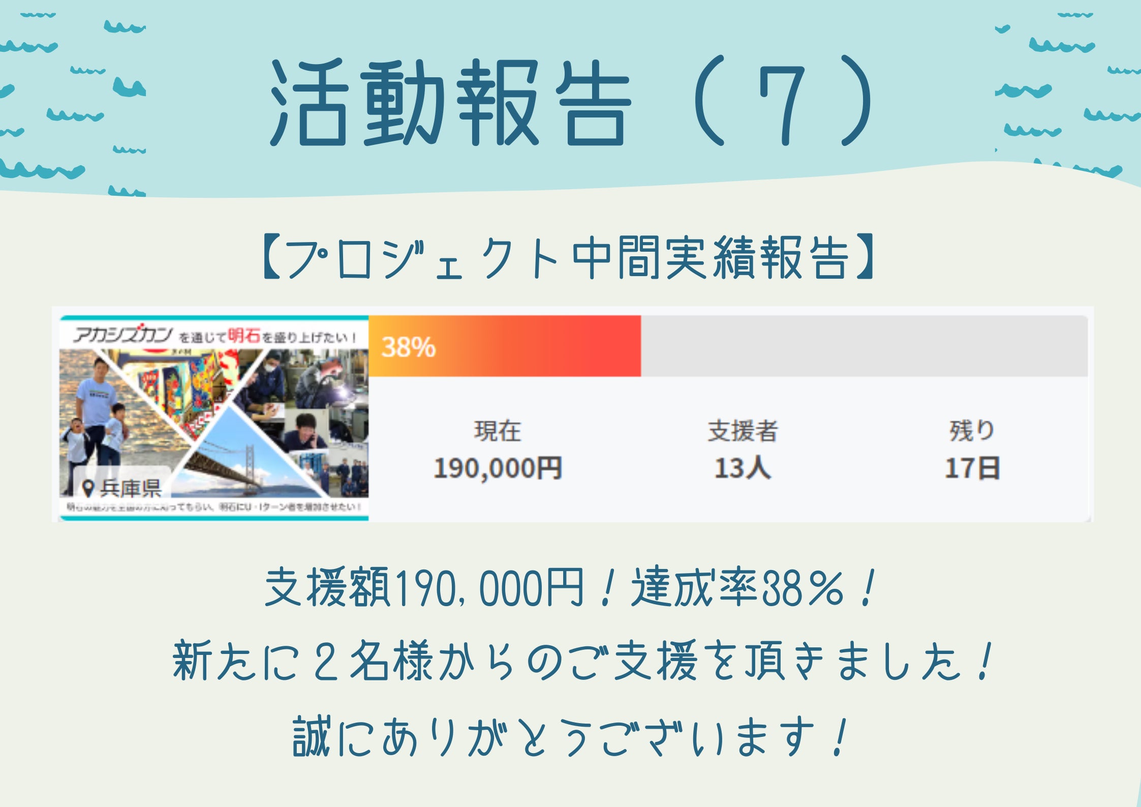 明石からではなく、遠方からの支援者様がいらっしゃったり、頑張ってねとお声がけしていただいたりと…最近は、とても励みになることが多いです!