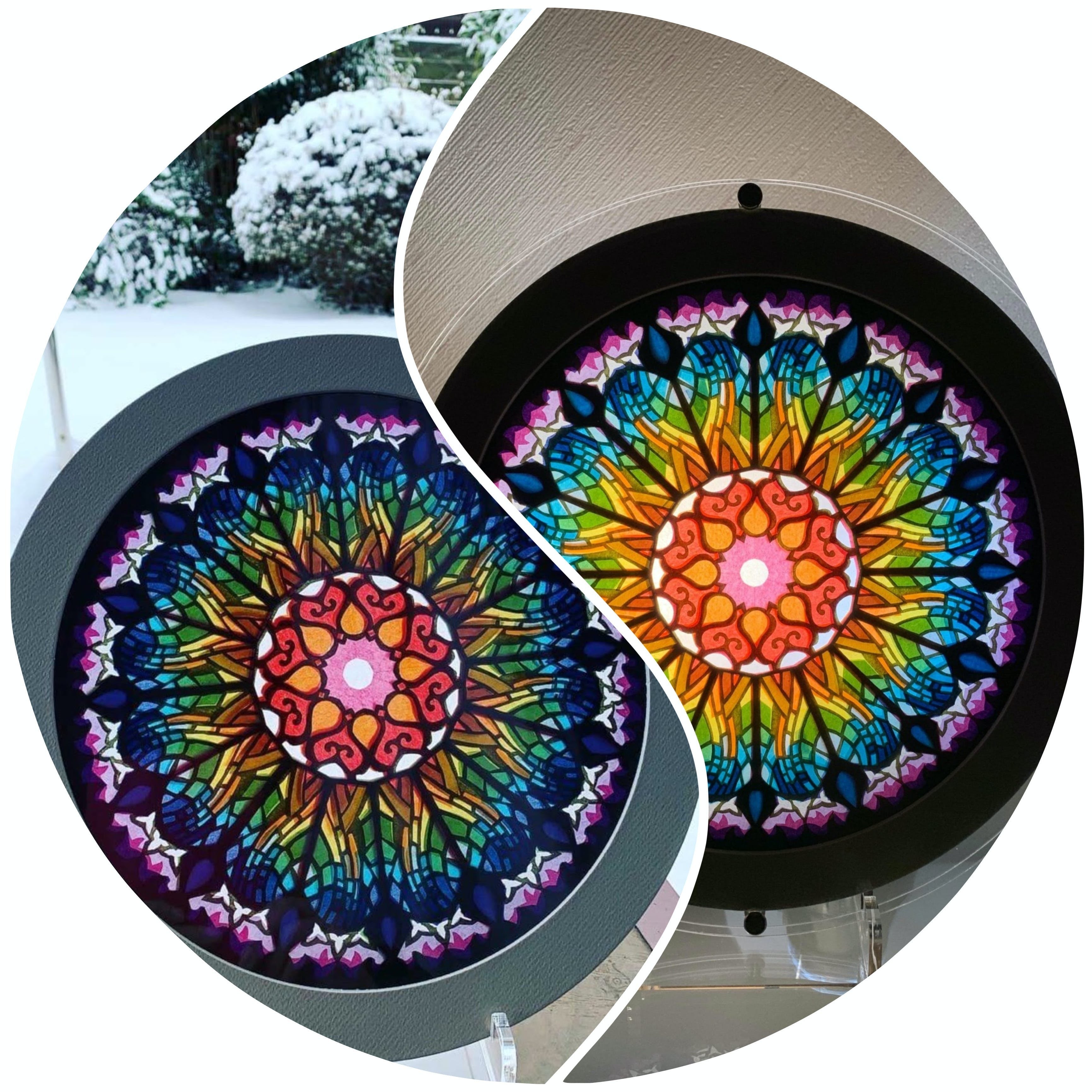 最近、私はローズウインドウ制作に失敗作は無いんじゃないかと思えてます。仕上がりが自分で思っていたのと違うと感じる作品も、必然があるから出来上がったんだと思います。作りながら癒され、見て癒され、出来た作品は自分の"心模様"!!