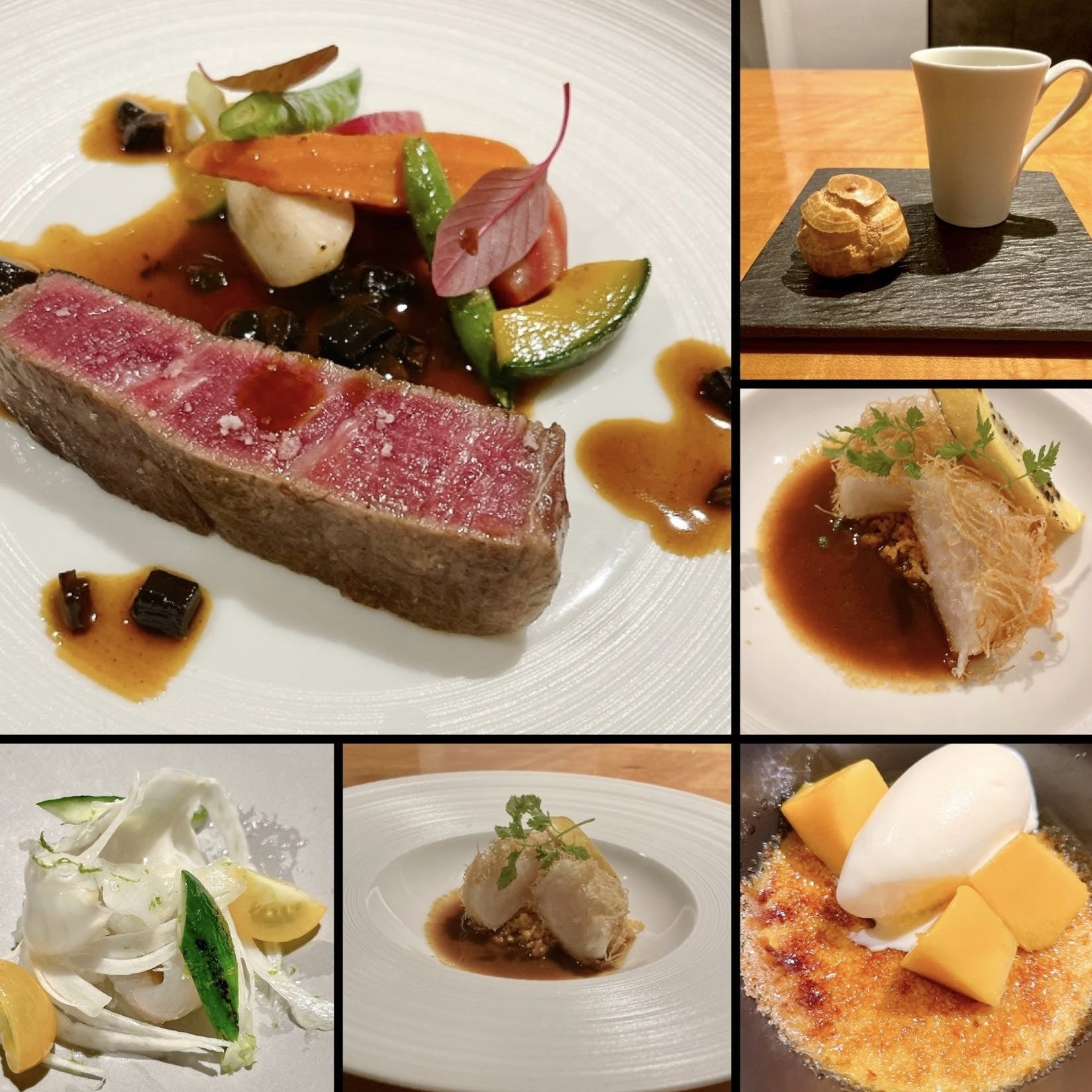 • ご覧いただきありがとうございます。今回は、8月のレストランメニューのご紹介をさせていただきます。アミューズ・ゴールドラッシュ(とうもろこし)の冷製スープ・グジェール(チーズの風味がするシュー生地)前菜・ホタテのカルパッチョとキャビア・イカのセビーチェ・和牛のタタキと雲丹魚・ヒラメのムニエル〜ドゥグレレソース〜肉・牛フィレのポワレ〜黒ニンニクのマデラソース〜・夏野菜のエチュべデセール・マンゴーブリュレ・パッションフルーツのアイスクリーム もっと見る