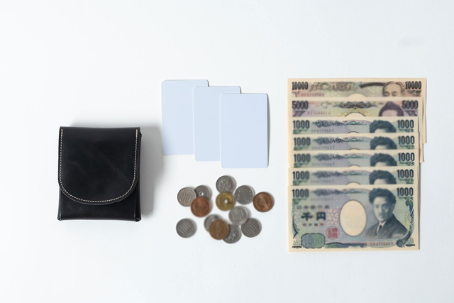 お札10枚、小銭40枚、カード5枚程度収納可能です。