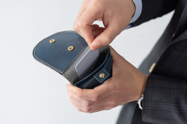 フラップがあるので、小銭が財布の外に飛び出て慌てる必要はございません。