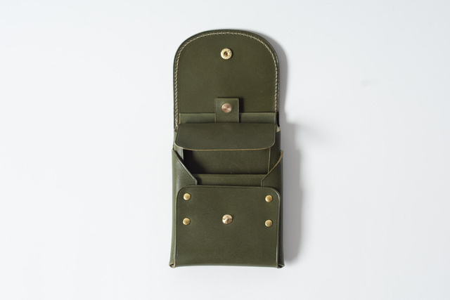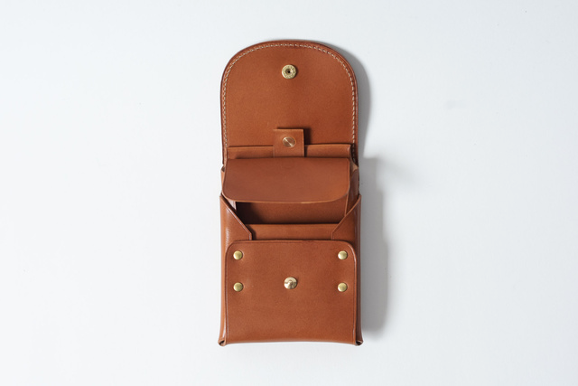 外側のフラップを開けると小銭入れ部分がホックで連動され、引っ張り出される構造になっています。