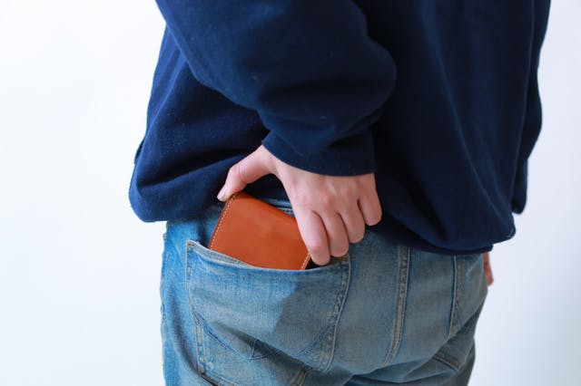 ミニマムウォレットなのでポケットにも引っかかることなくスムーズに収納できます。