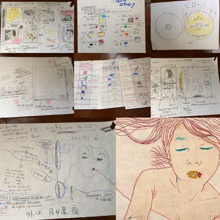わたしは「めばえ」ジャケットやブックのアートワークに取りかかりました。いつもこのように細かくかいてデータを作ってもらいます。これは2015年リリースした「なんとかロマンチック」のアートワーク下書きです。今回もまずこれを作ります。ご期待下さい。