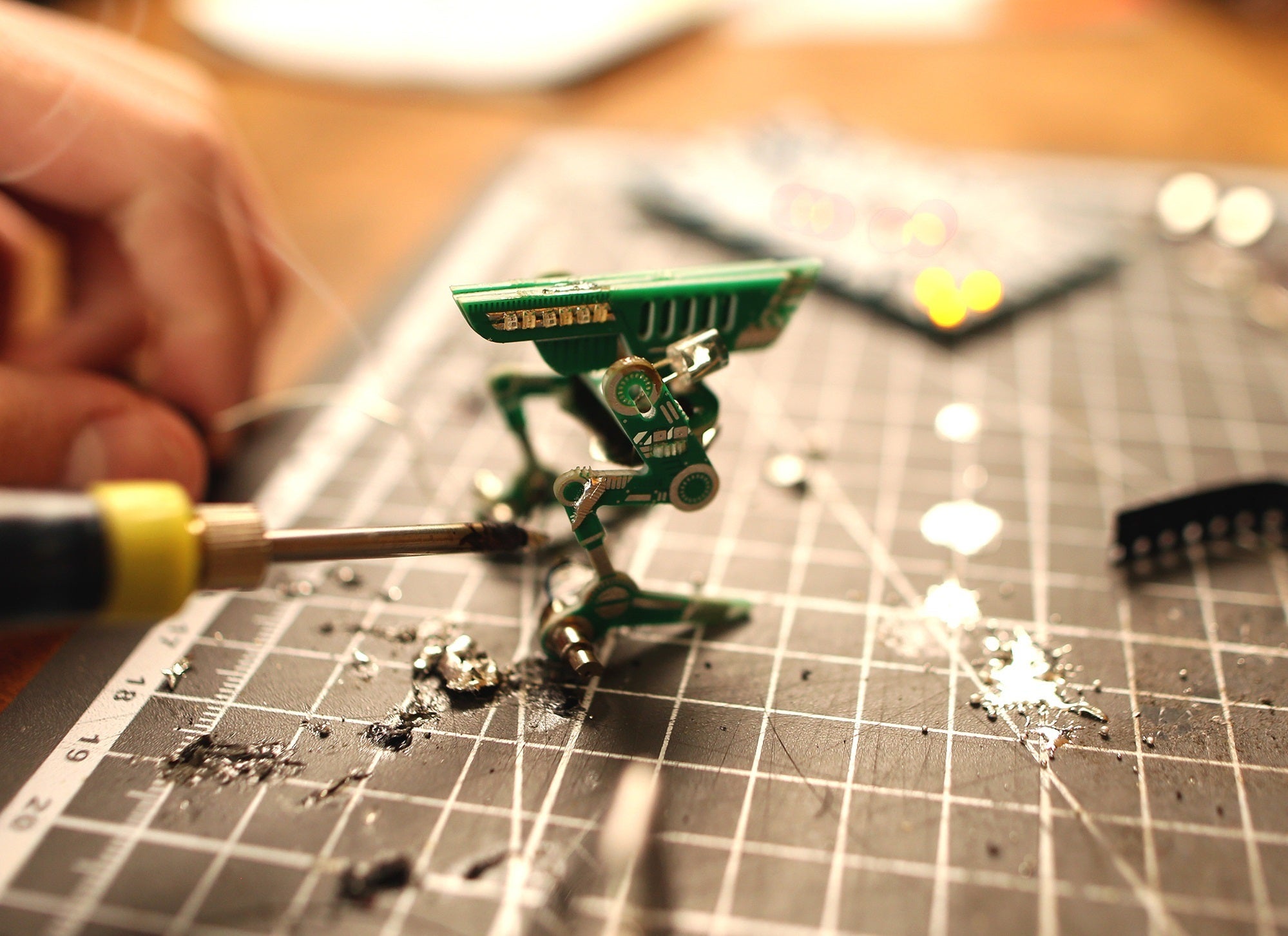 当然ロボットのはんだ付けは最初うまく行きませんでした。なんどもなんども失敗してやり直してやっていると、没頭して気づいたら何時間も経っていて、遊びに夢中になって没頭していた子供の頃の懐かしい気持ちを思い出していました。