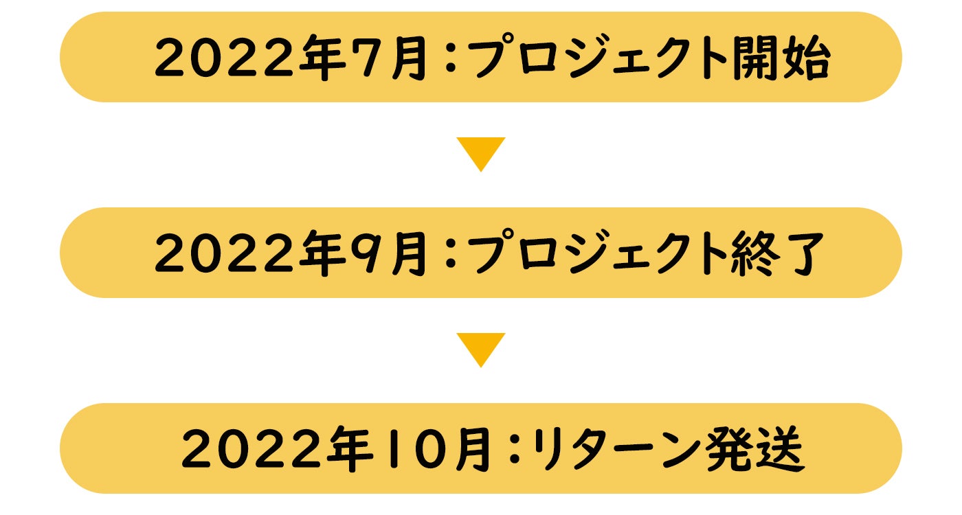 ※本文中に記載させていただいたスケジュールは、あくまでプロジェクト公開時点の予定です。支援の性質上、配送遅延のおそれがございます。原則として、配送遅延に伴う支援のキャンセルはできませんが、リターン配送予定月から6ヵ月を超えた場合には、希望者に限りキャンセルにて対応させていただきます。