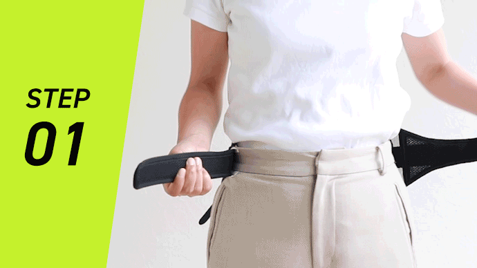 調節ストラップが一番短い状態で腰回りにセットします。