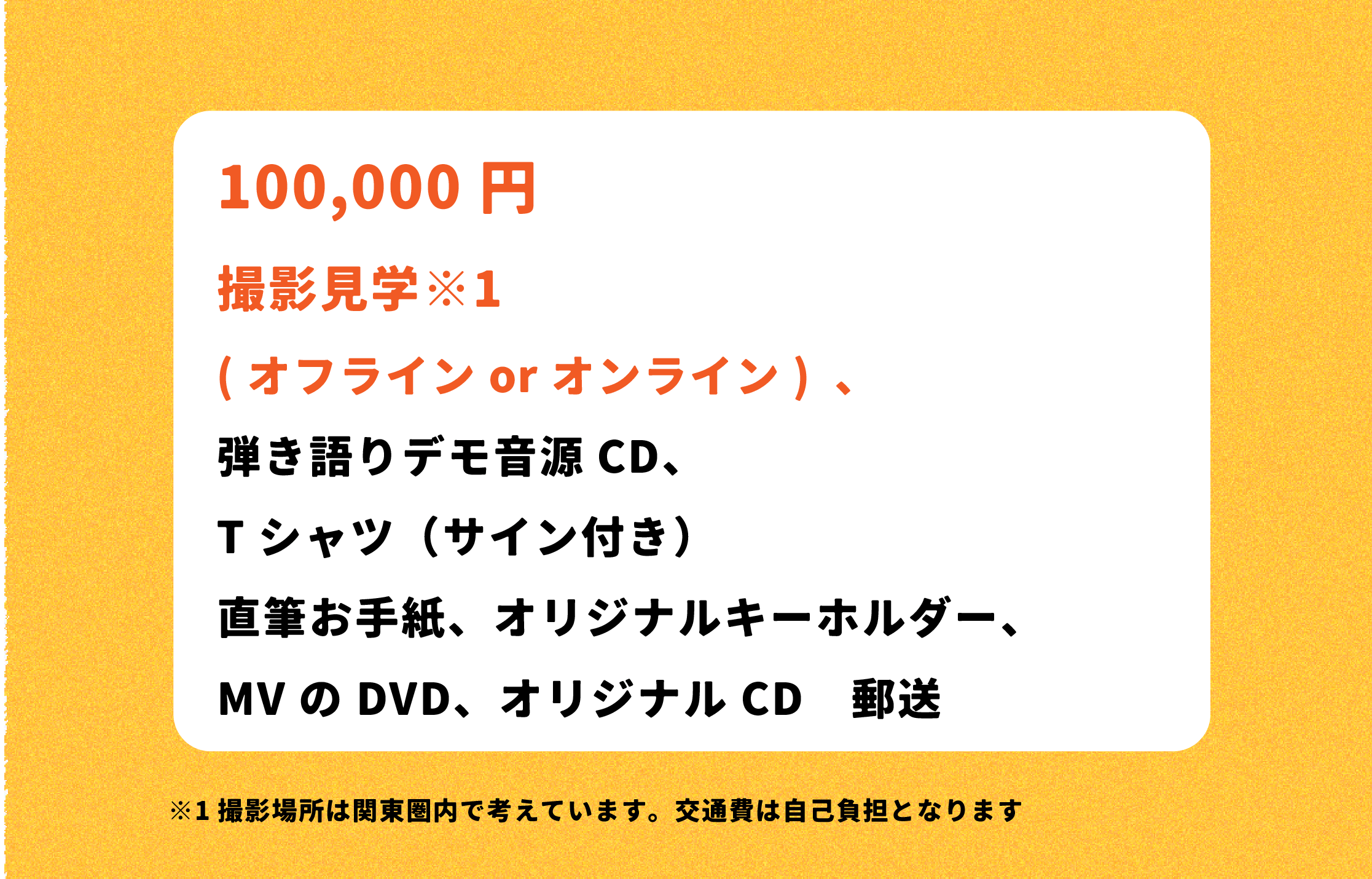 ・MV撮影:10万円(ロケ地、スタッフ費用)