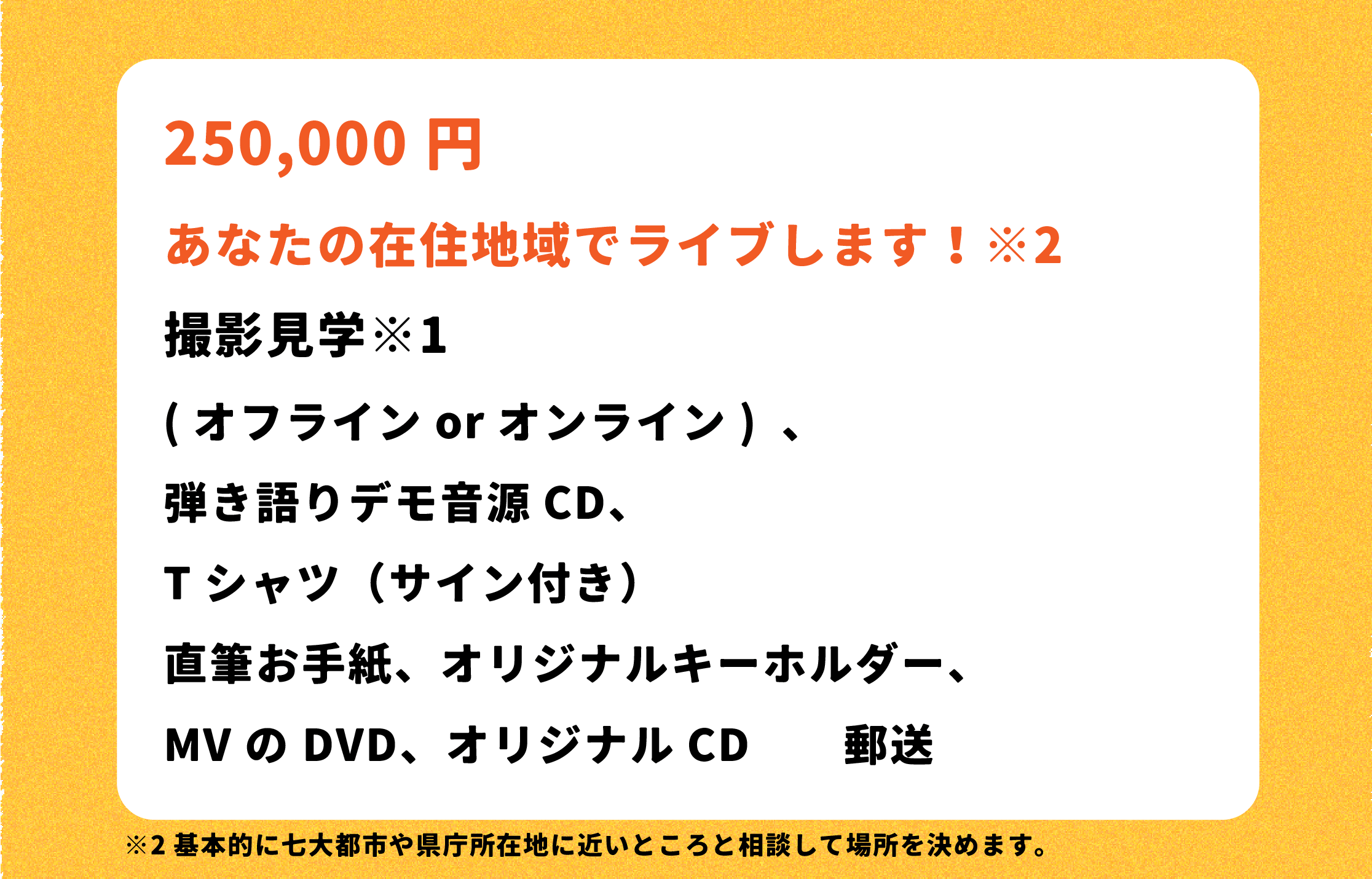 ちなみに、リターン次第で、地方ライブも行います!!詳しくはリターン詳細まで!