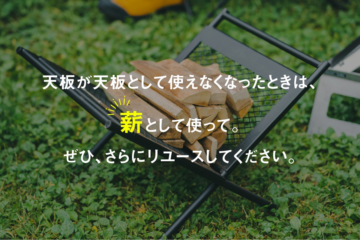 使い終えた足場板を、テーブルや椅子などの家具に生まれ変わらせています。