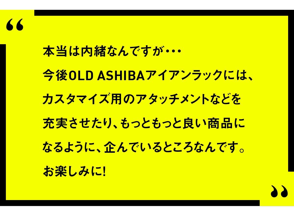 そのために、まずはたくさんの方に「OLD ASHIBAアイアンラック」をお届けしたいと思っています。
