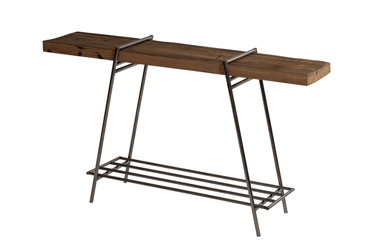 今までは使命を終えて廃棄されていた足場板を、アイアンラックの天板としてリユース。