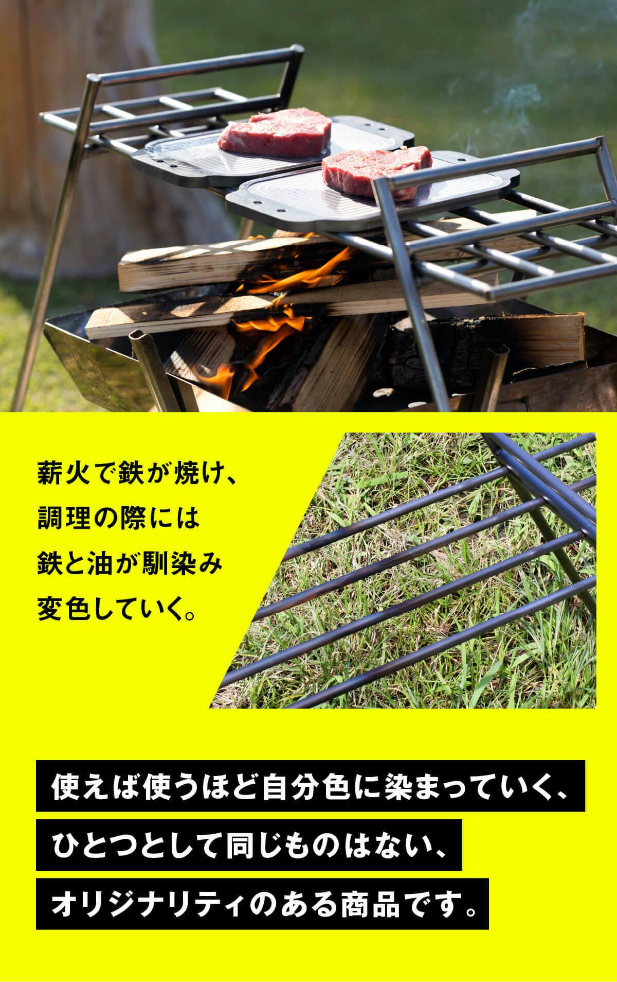 焚き火台を下に設置すれば、調理台として焚き火料理も楽しめます。