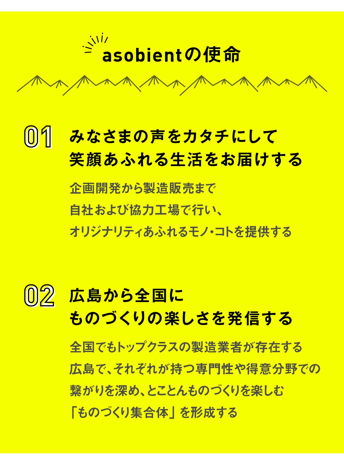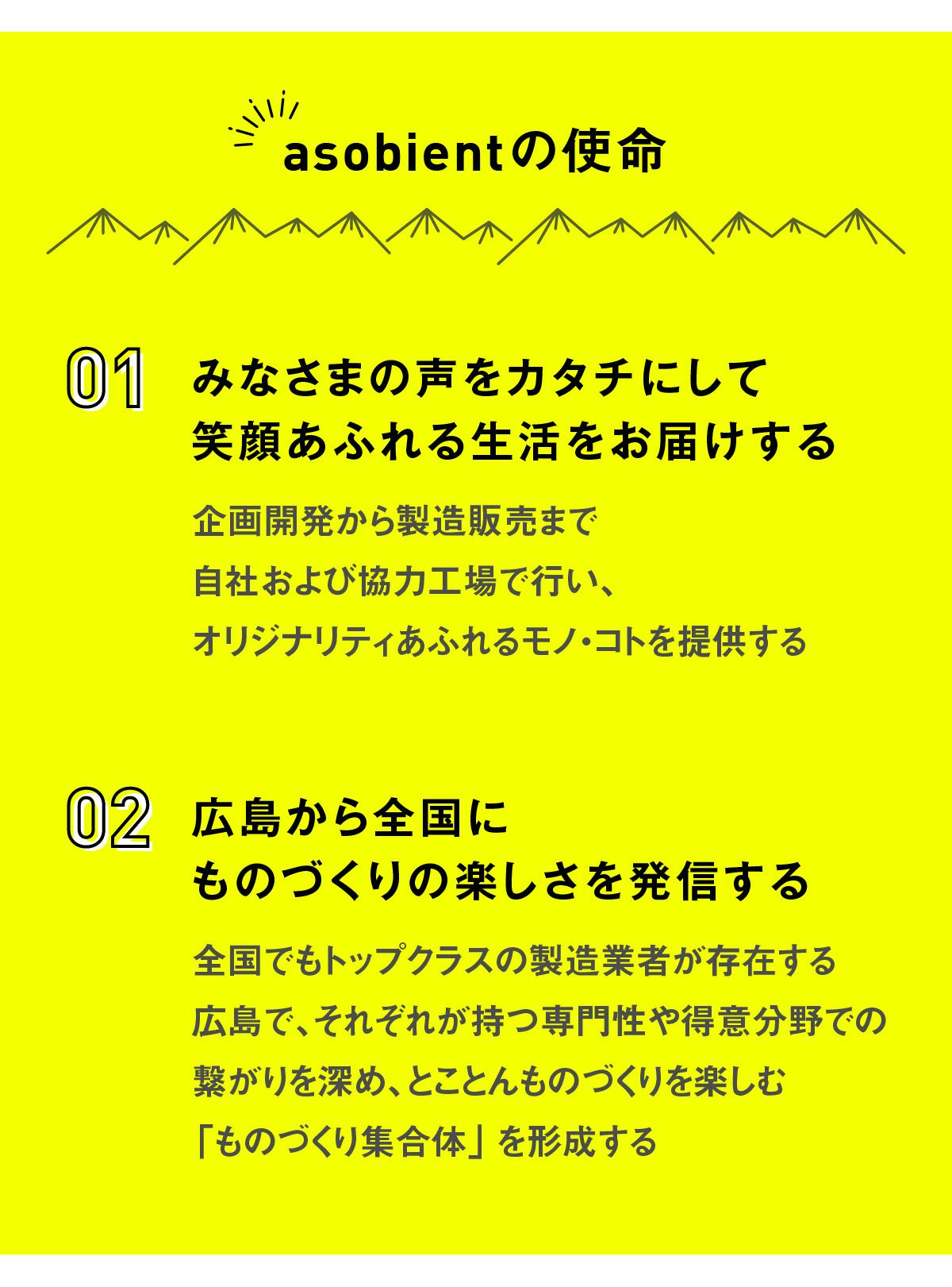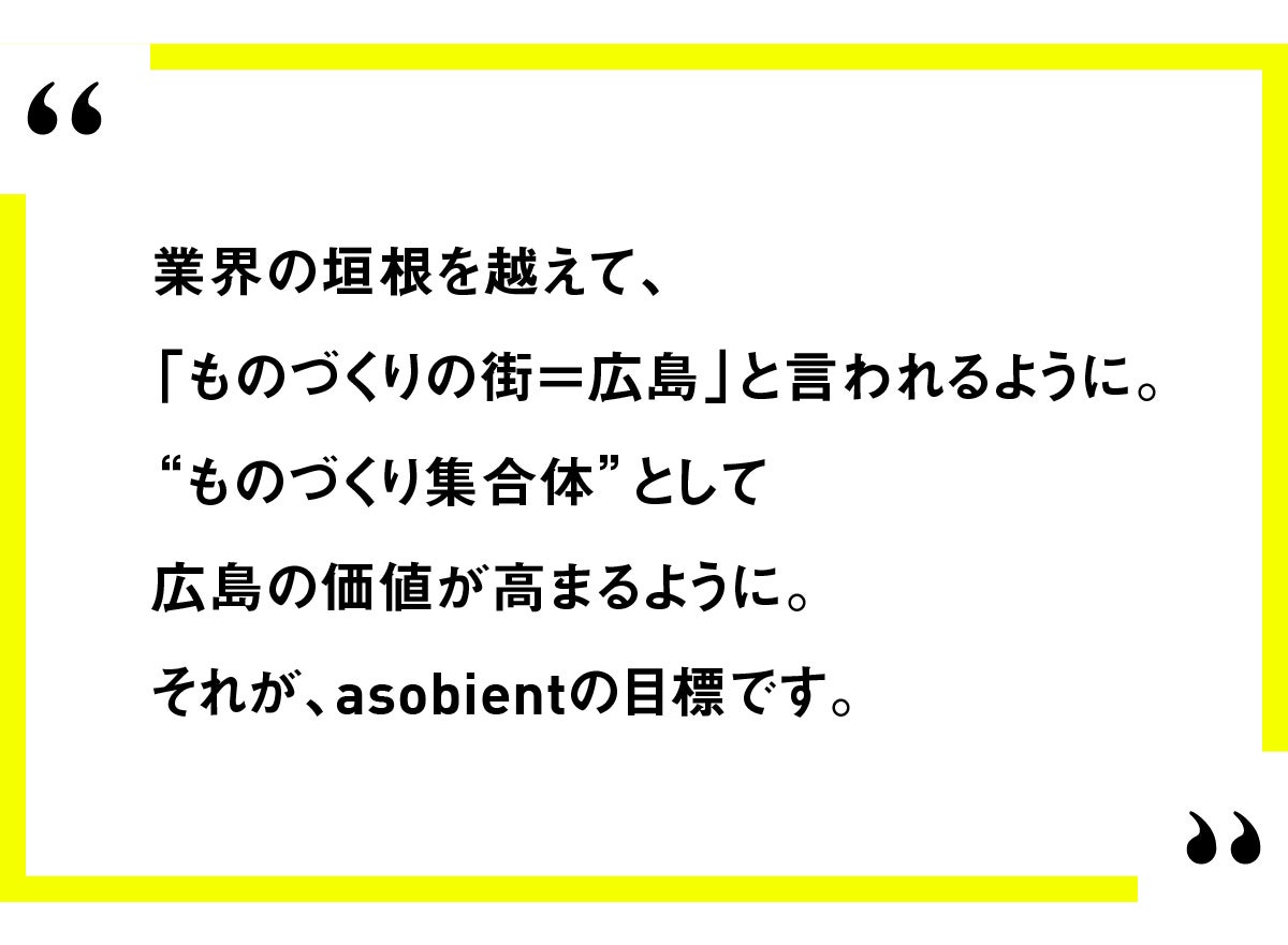 asobientが製造業者の独自分野や得意分野の架け橋となり、ここ広島から、とことんものづくりを楽しむ「ものづくり集合体」を作っていきます!