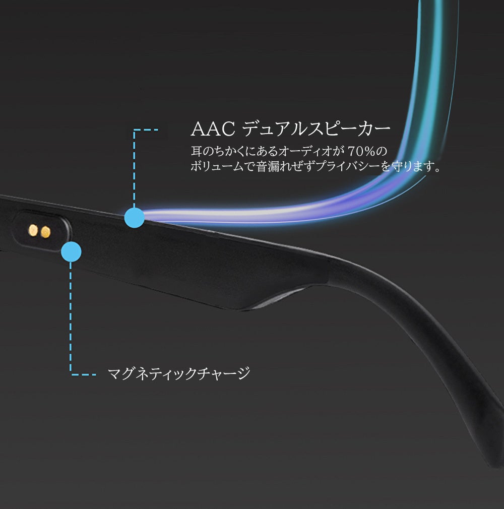 最新のBluetooth技術でスマートフォンに接続し、高機能で高音質の通話や音楽再生にフィーチャーした革新的なガジェットのスマートグラスです。