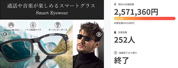 CAMPFIRE 特別価格35%OFF Smart Eyewear サングラス 1セット 一般販売価格15,300円→9,945円