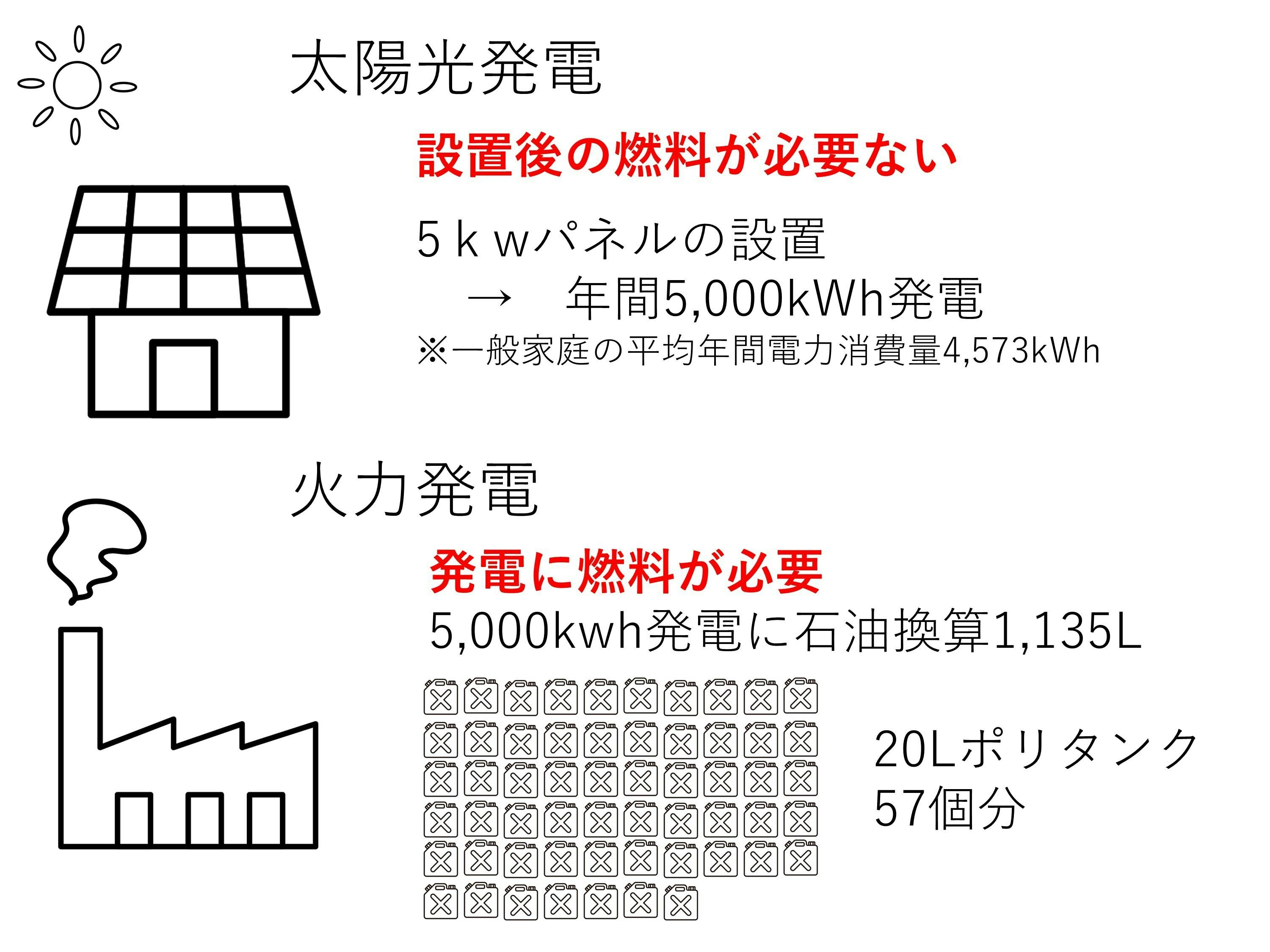 対して、太陽光発電は、燃料を使わず20~30年使用できます。
