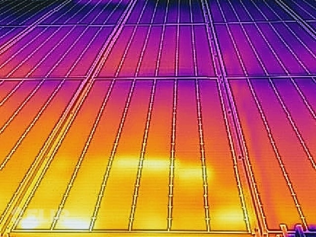 (上の写真は自宅の故障したパネルの赤外線写真です。白くなっている部分が発熱しています。