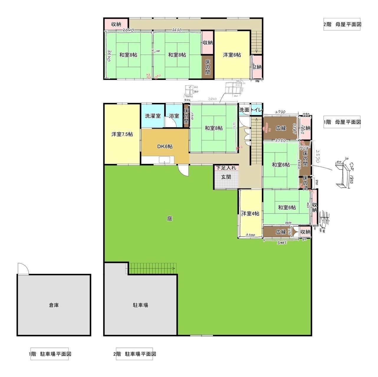 1回の左から、倉庫+食糧庫、防音室、憩いの場。