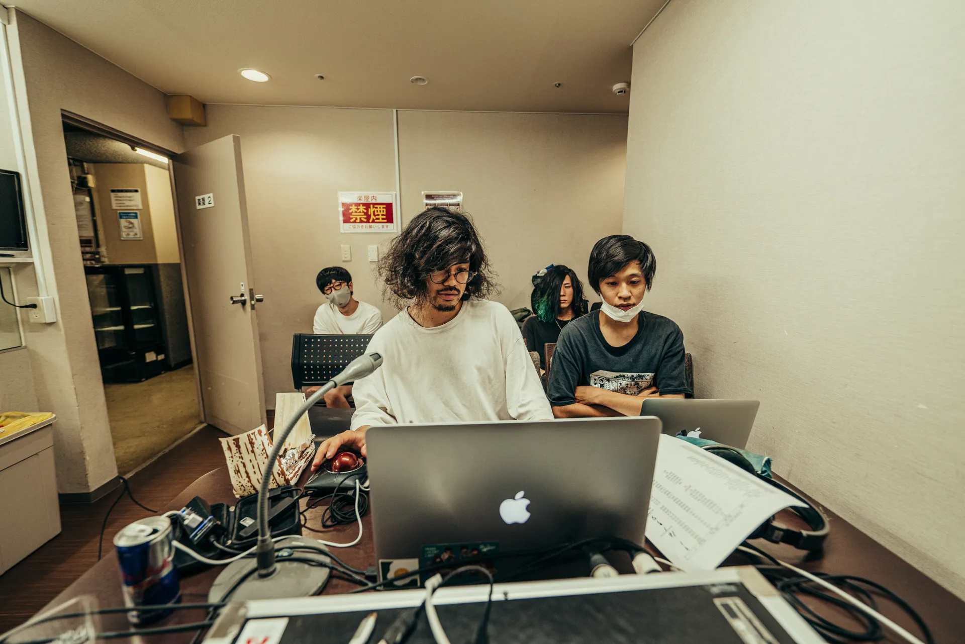 防音室はサイズの都合上バンドメンバーしか入れないので、同じ建物内でライブの中継を見る形になりますが、スタジオが実際に使われているのを実感もらえると思います。