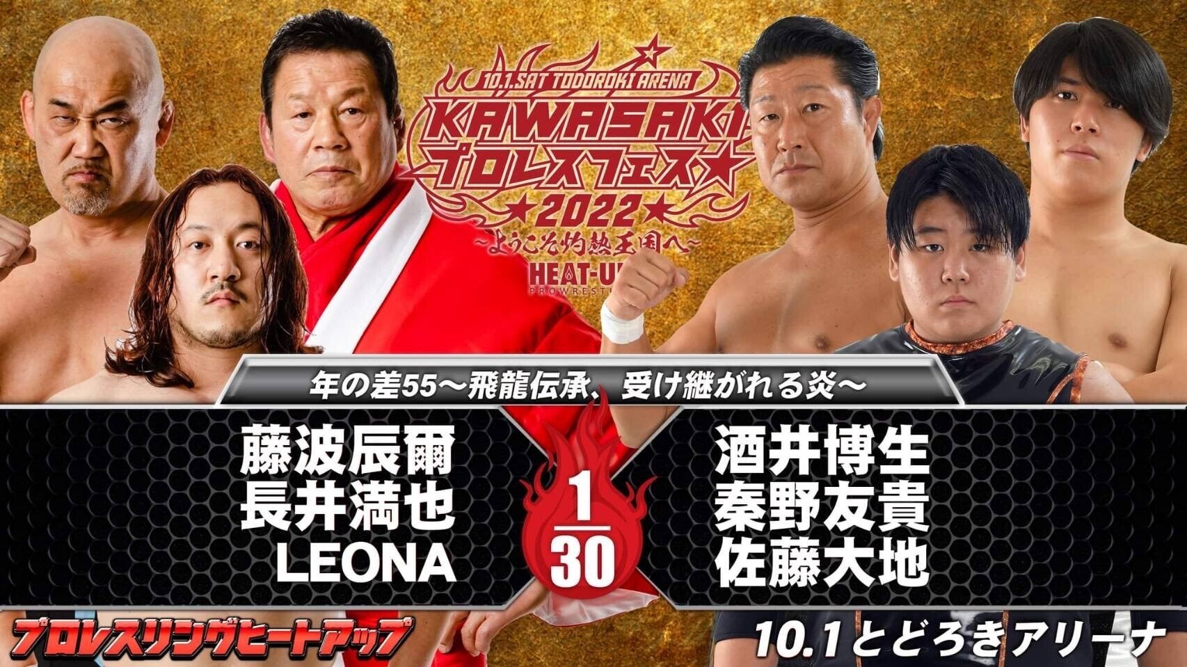 藤波辰爾&長井満也&LEONA vs 酒井博生&秦野友貴&佐藤大地