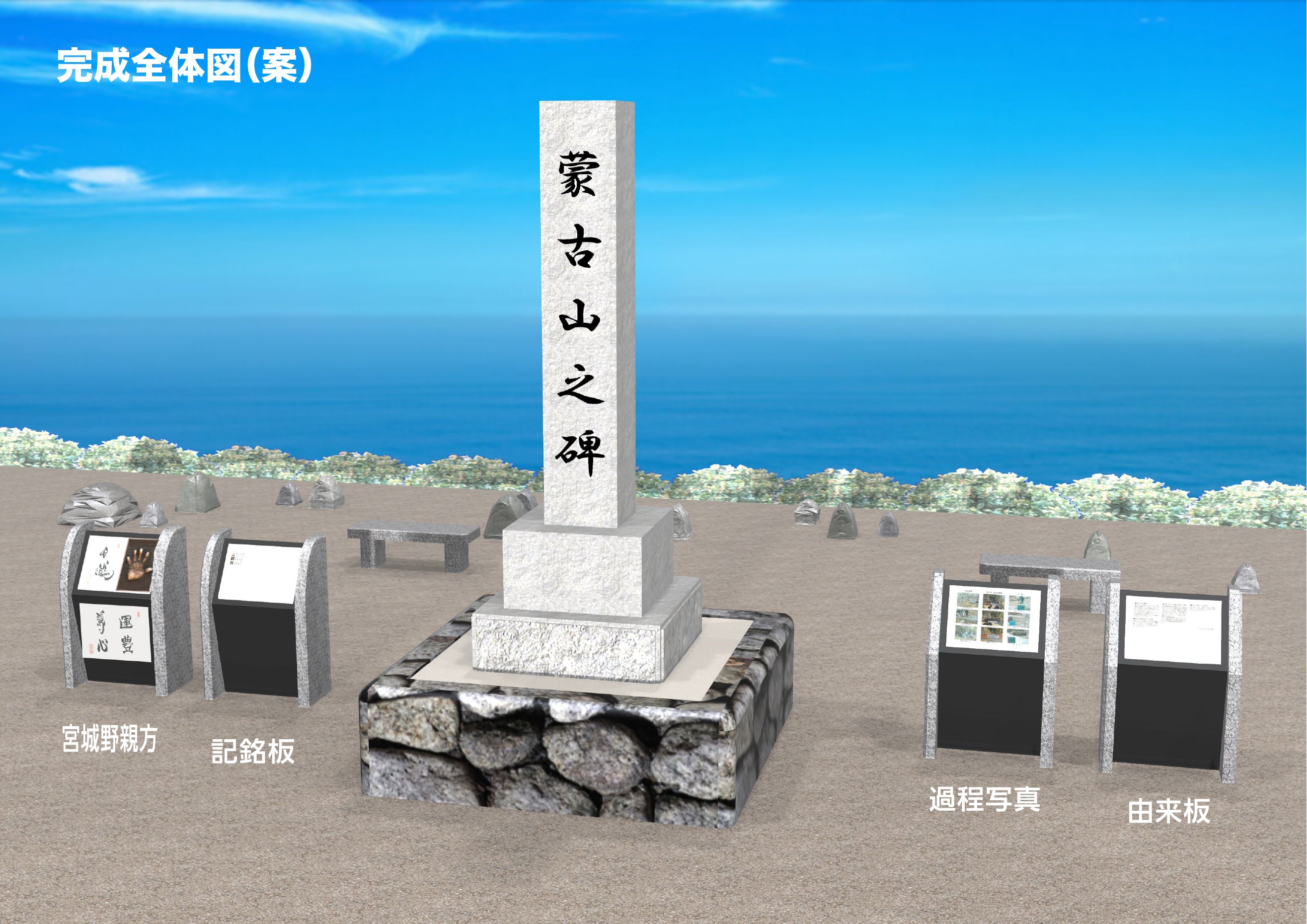 今回、福岡県福岡市西区最西端にそびえる蒙古山の山頂にある『蒙古山之碑』の復興を通して、国内外の多くの方に歴史を学んでもらい、ともに未来を考える場所となればと考えております。