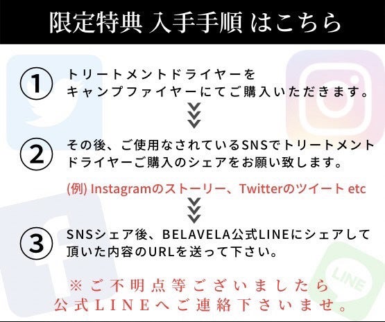 ※SNSシェアをされた方は、キャンプファイヤー上のメッセージもしくは公式lineにて「SNS投稿されたURL」をご報告お願い致します。
