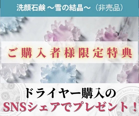 また、ご購入いただき、キャンプファイヤーページをSNSにてシェアしてくださった方には非売品の雪の結晶の石鹸もプレゼント予定なのでぜひシェアもよろしくお願いいたします<(_ _)>※弊社代表の車谷セナの特別動画もプレゼント予定。